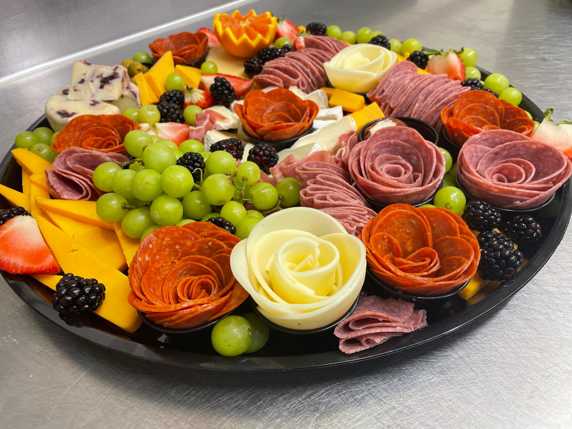 Behold a symphony of culinary excellence, featuring an impeccable selection of 17 hand-picked artisan cheeses, premium meats, delectable dried fruits, succulent nuts, divine chocolates, and briny olives.